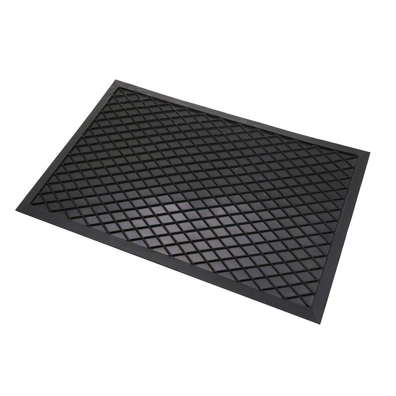 Wycieraczka wejściowa z pełnej gumy (100% guma) o strukturze cienkiej kratki i krawędzi najazdowej to praktyczne rozwiązanie do stref wejściowych narażonych na błoto, wodę i intensywny ruch. Ciężka konstrukcja (ok. 1,8 kg) zapewnia stabilność na posadzce, a antypoślizgowe właściwości gumy oraz ażurowa kratka zwiększają przyczepność i skutecznie zatrzymują brud przed wejściem. Produkt odporny na warunki atmosferyczne, łatwy w utrzymaniu – zabrudzenia usuwa się przez wytrzepanie lub opłukanie wodą. Rozwiązanie typu „gumowa wycieraczka kratka do wejścia na zewnątrz” ogranicza nanoszenie zanieczyszczeń do środka i pomaga utrzymać porządek przy drzwiach sklepu, biura lub domu. Antypoślizgowa wycieraczka z najazdem dobrze współpracuje z wózkami i koszami na kółkach, ułatwiając swobodne przejazdy.
